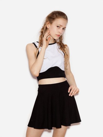 White T-shirt and short plaid skirt